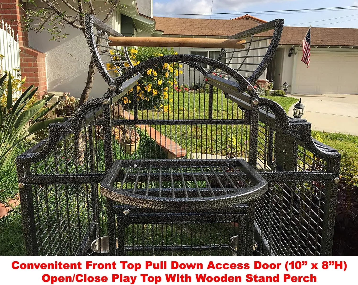 The play top feature of this cage is key to promoting your parrot’s mental and physical health. By encouraging interactive playtime, your birds will engage in activities that stimulate their minds and keep them physically fit. A dedicated play space helps birds socialize and engage with their surroundings, which is crucial for their happiness and well-being.