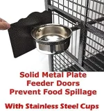 - 4 stainless steel feeding cups with swivel solid metal feeder doors to prevent spillage