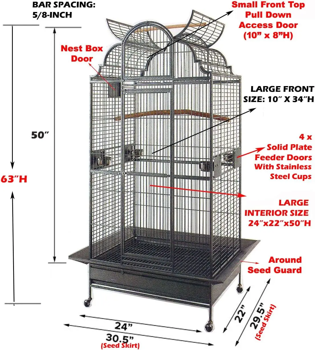 - Bar Spacing: 5/8″ – Ideal for medium to large birds